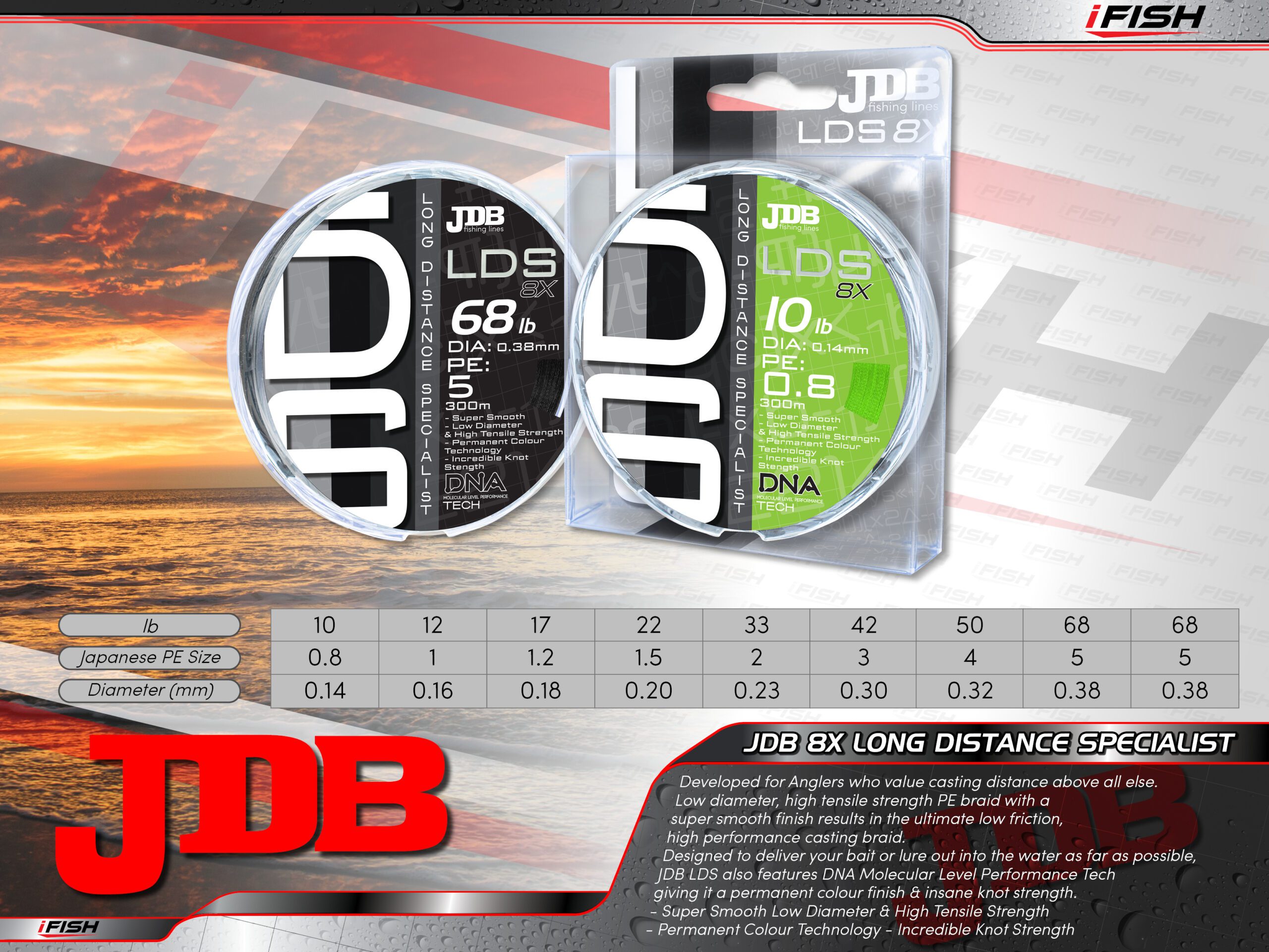 Designed to deliver your bait or lure out into the water as far as possible, JDB LDS also features DNA Molecular Level Performance Tech giving it a permanent colour finish & insane knot strength.